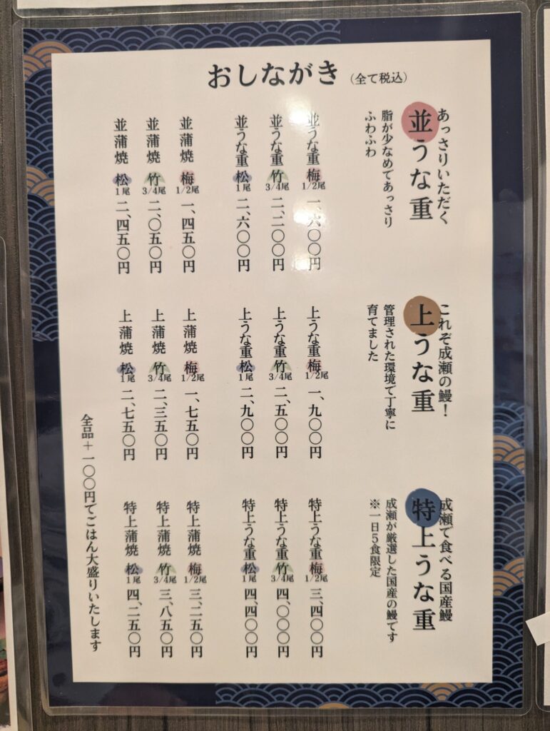 「鰻の成瀬」といえば、ここ数年で急拡大している「美味しくてリーズナブルな鰻屋さん」として話題ですが、実はメニューのグレードが細かく分かれているのをご存知でしょうか?