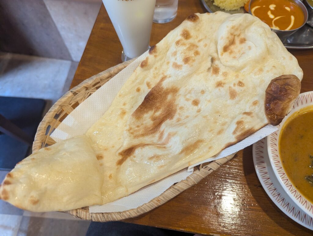 そして何と言っても、ナランの魅力はこの焼きたてナンです。 運ばれてきた瞬間、小麦の焼けた甘い香りがテーブルいっぱいに広がります。